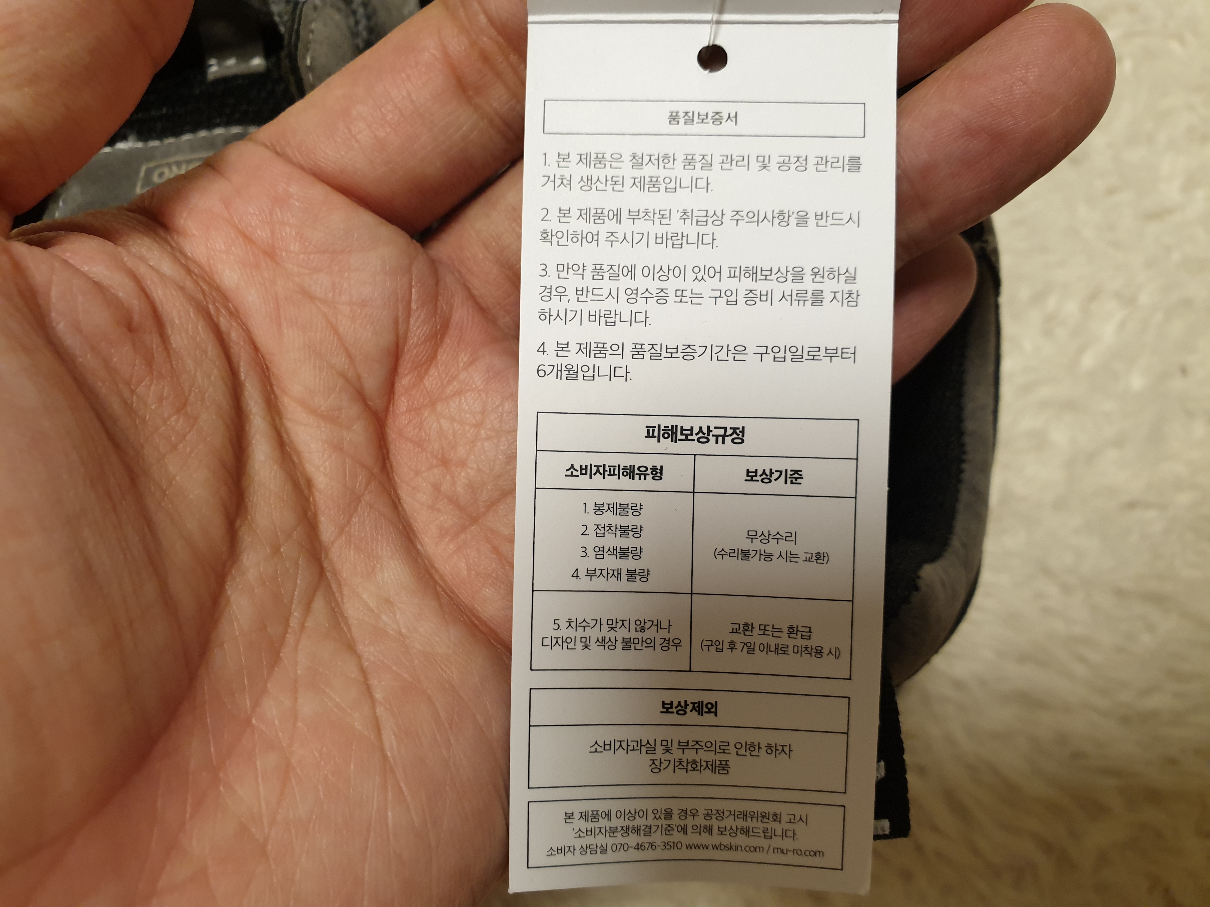 봉제불량/접착불량/염색불량/부자재불량은 무상수리(수리불가능시는 교환)