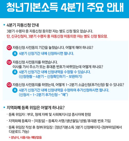 오늘은 2019년 4분기 청년기본소득(청년배당) 신청 안내에 대한 내용을 가져왔습니다.