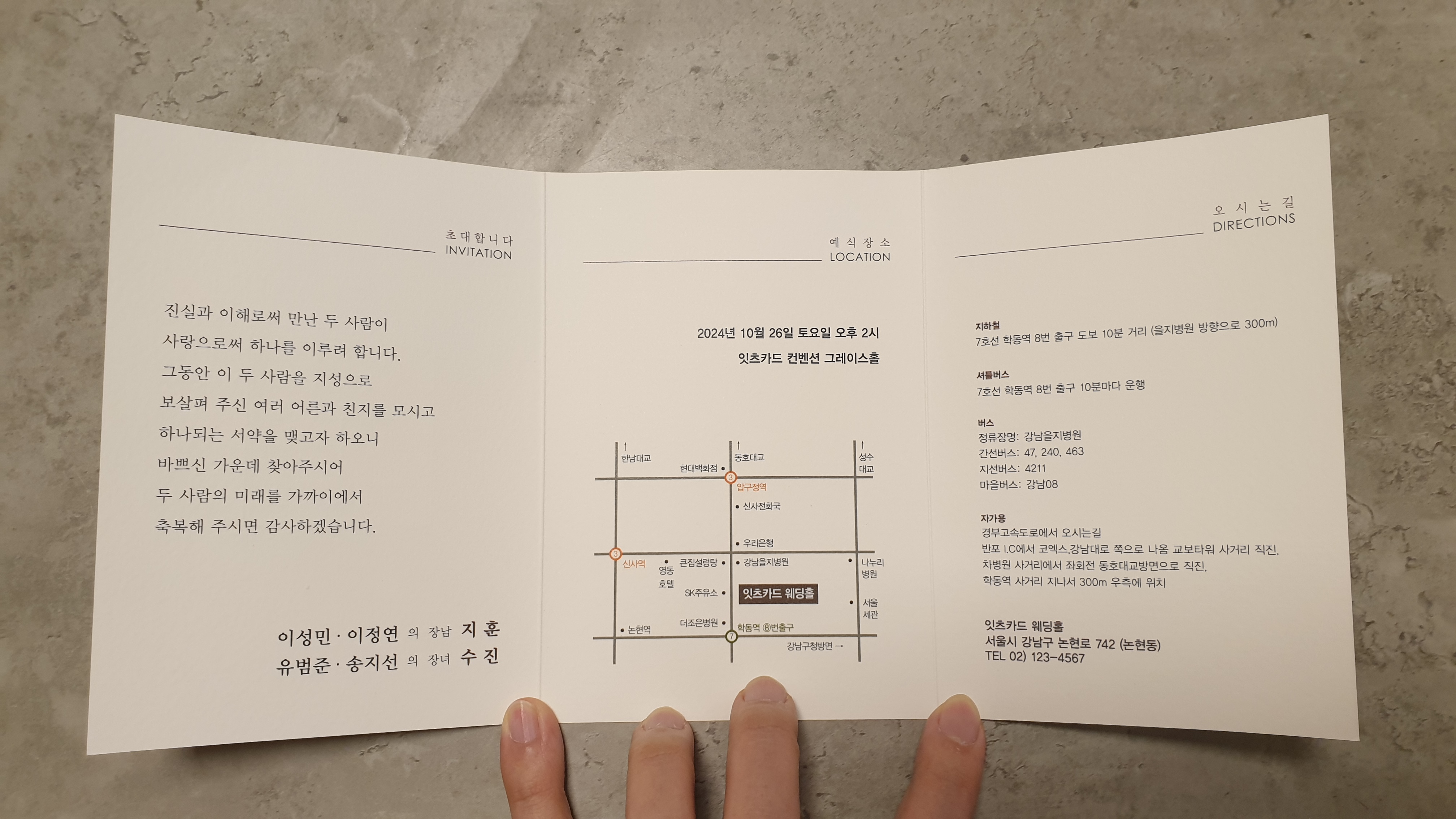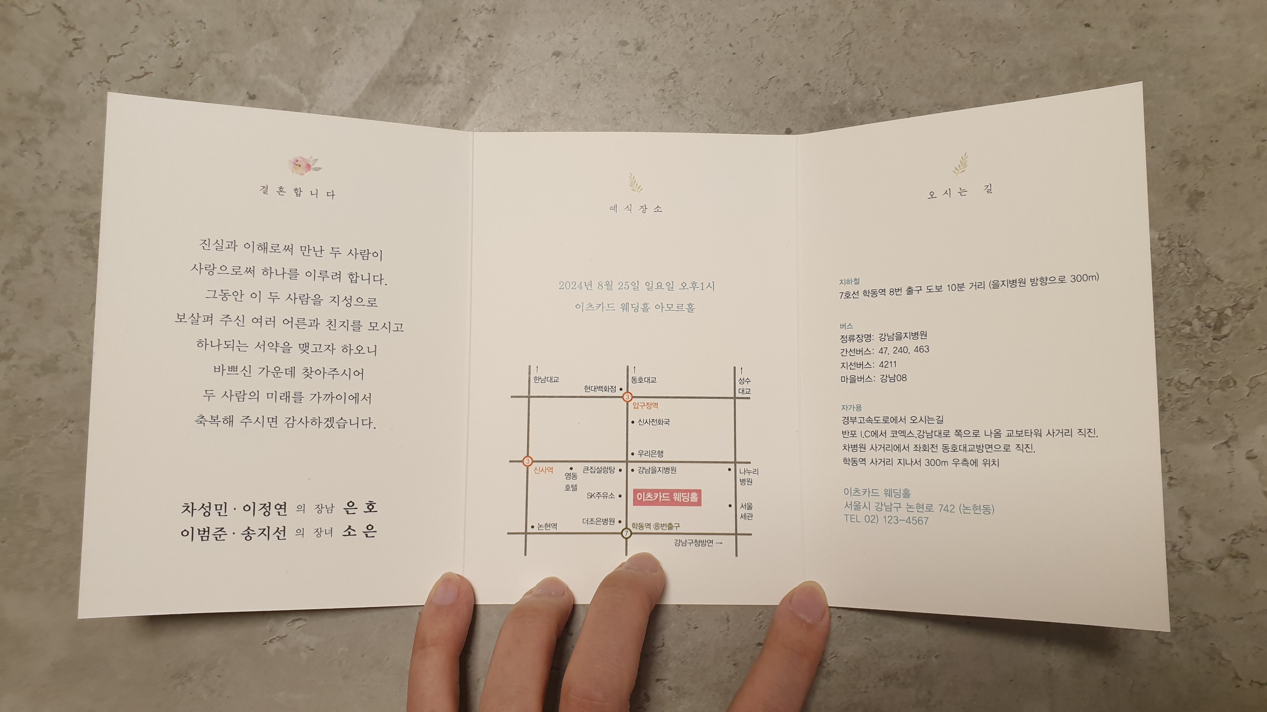 이 청첩장은 전체면을 모두 사용했어요
