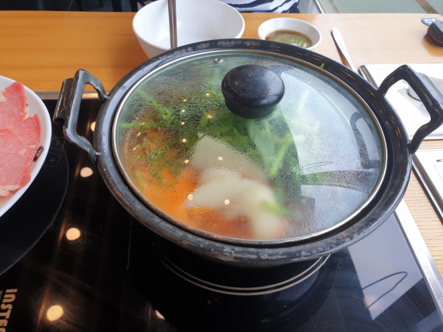 육수가 팔팔끓어 고기를 익힐수 있을정도가 되었을때
