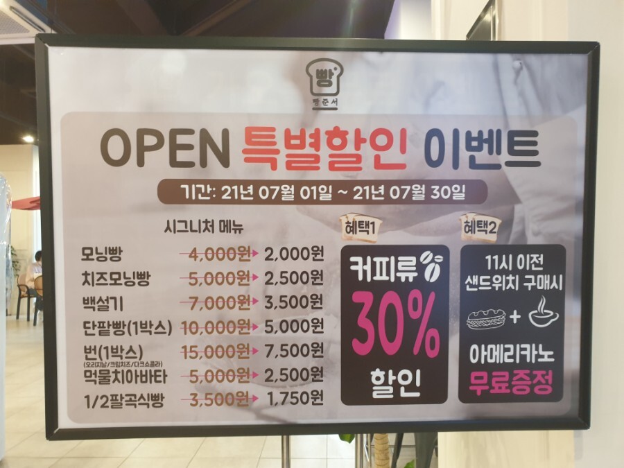 들어가자마자 입구 오른쪽에 보이는 OPEN 특별할인 이벤트에 대한 내용입니다