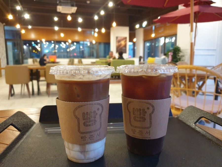 얼죽아인 저는 아이스아메리카노와 아이스라떼 그리고 크림빵을 주문했어요 :)