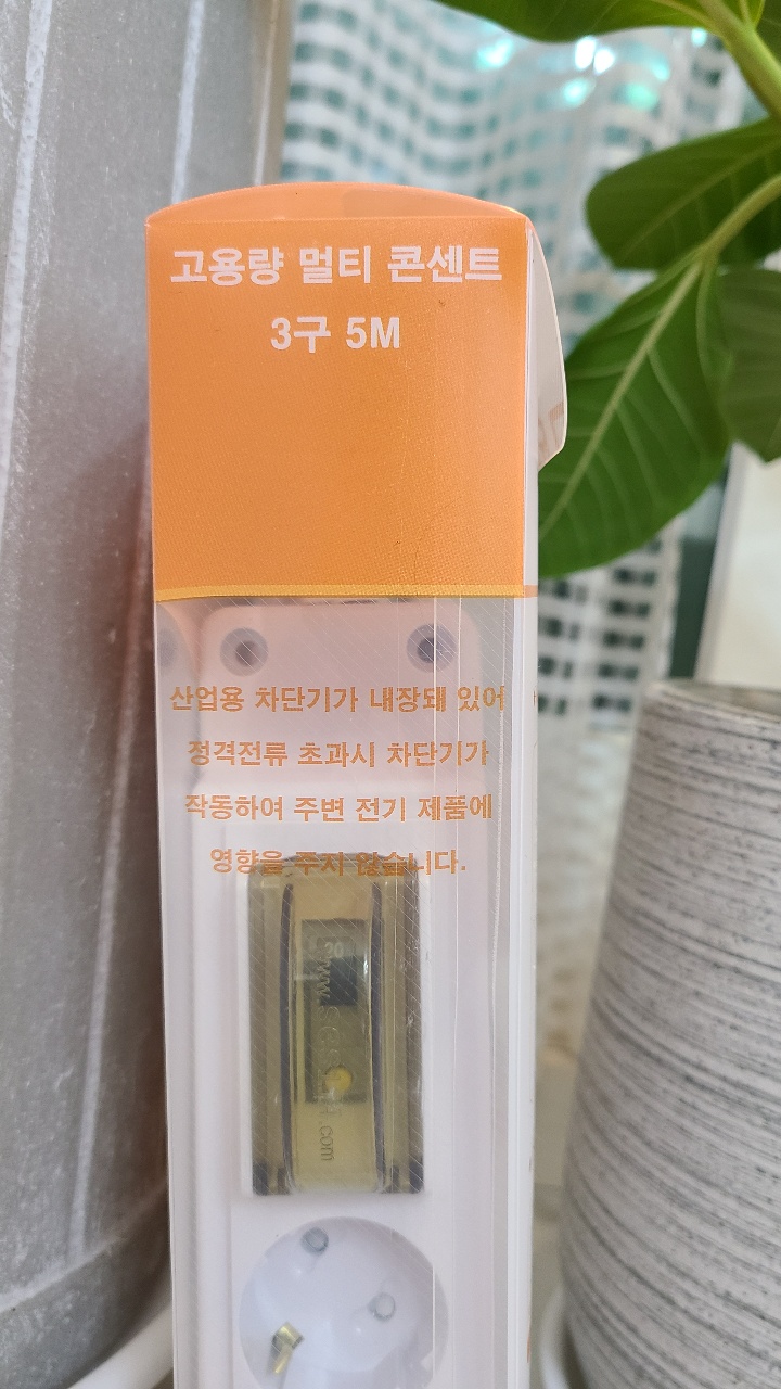 포장도 굉장히 깔끔하게 배송되어온 고용량 멀티탭. 3구와 5M는 제가 필요하다고 생각되어 옵션 선택에서 선택하였고 누전 차단 기능 및 과부하 차단 기능을 갖고 있어서 좀 더 안전하다고 생각했습니다. 대부분의 일반 멀티탭은 최대 2800W까지만 사용이 가능하다고 합니다. 그러나 위에서 말씀드렸듯이 제가 사용해야 할 세탁기와 건조기의 합은 2200 + 2400 = 4,600W 일반 멀티탭으로는 수용할 수 없는 용량이었어요.