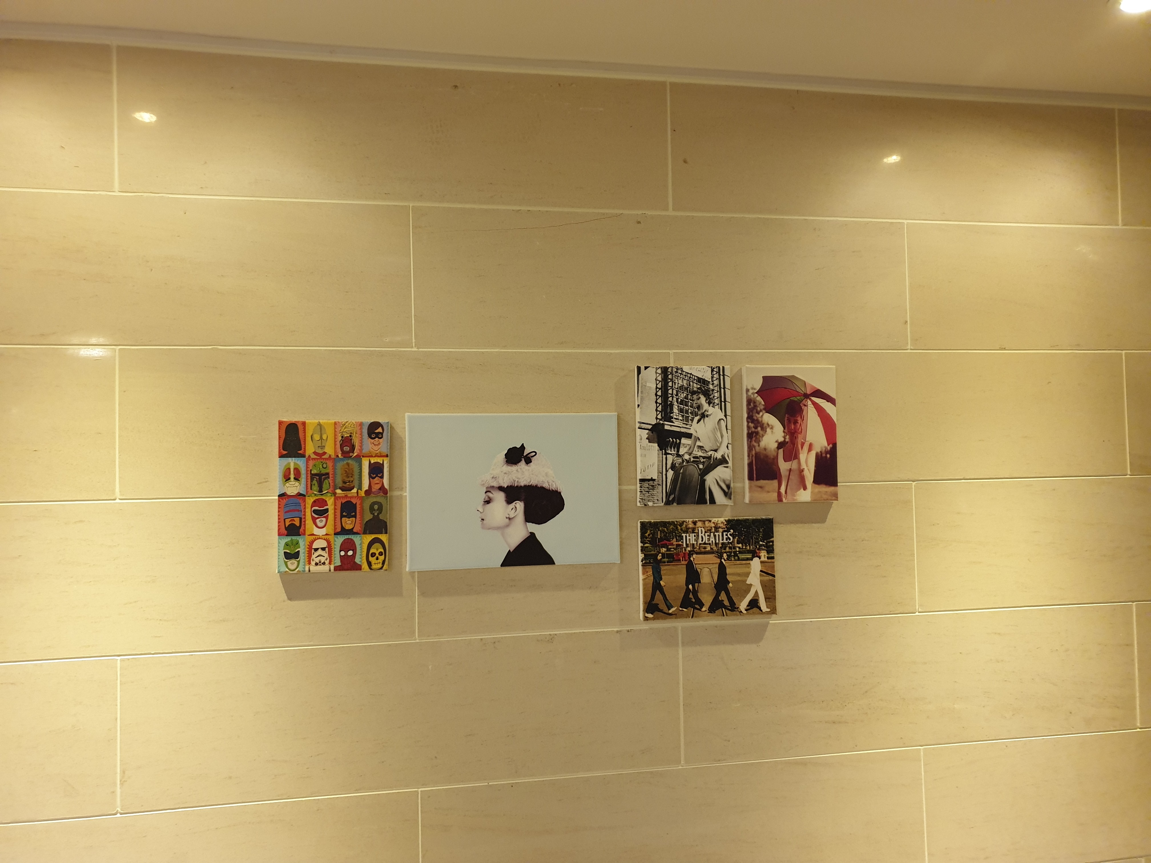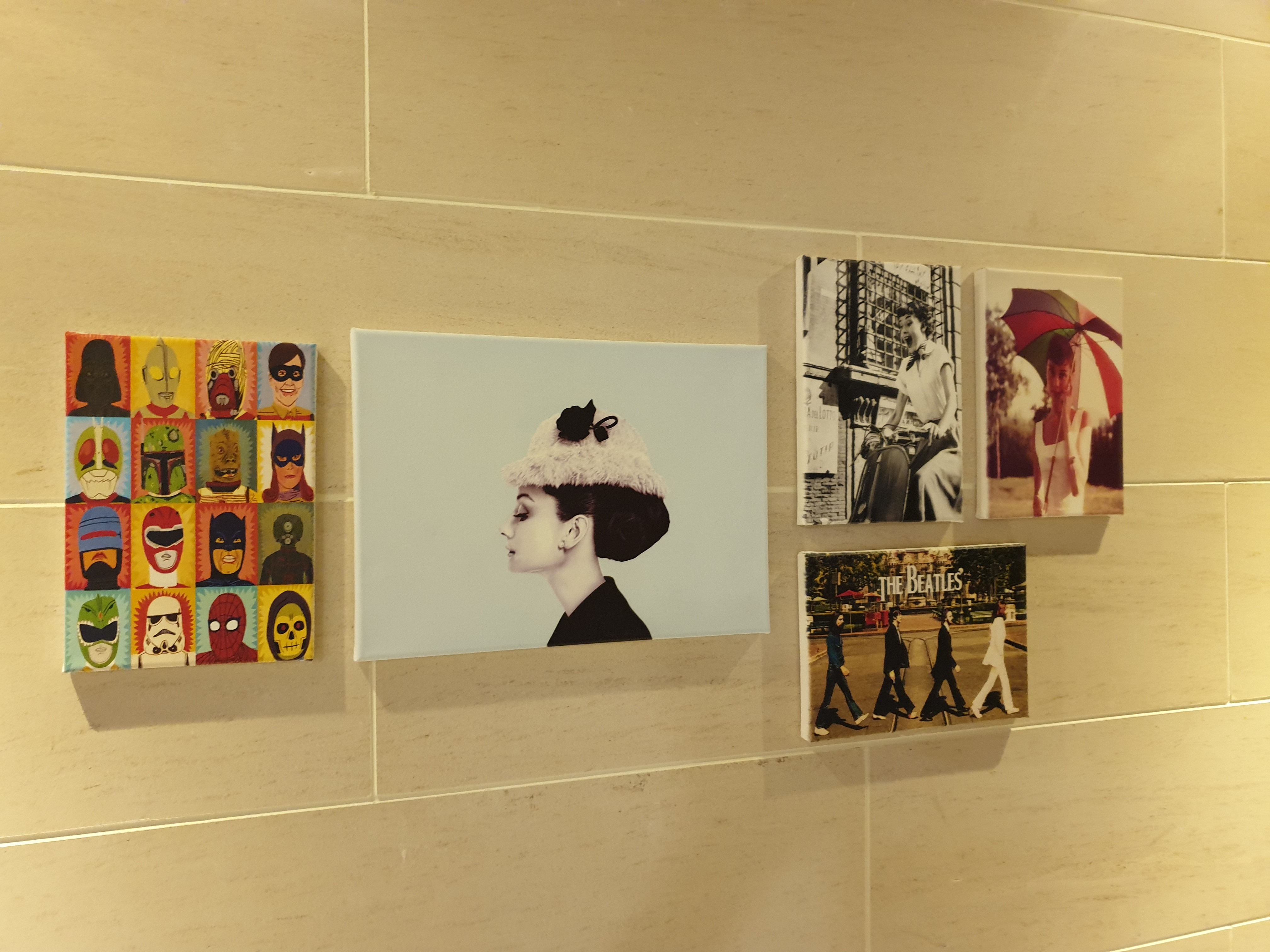 오드리햅번액자와 비틀즈액자 그리고 베트맨, 울트라맨, 스파이더맨 등 히어로가 있는 액자까지
